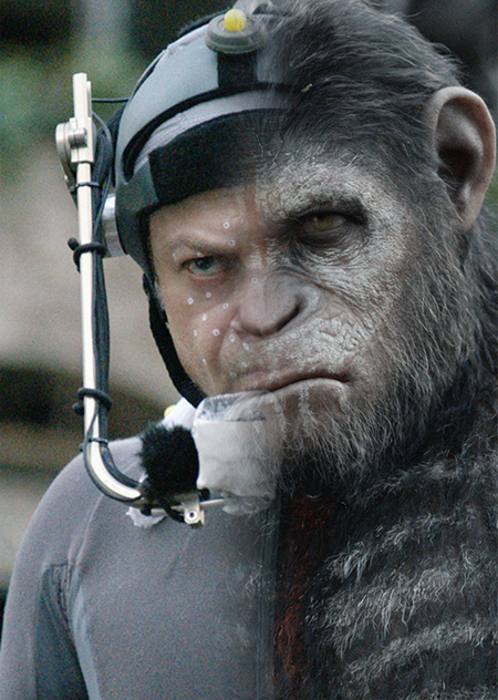 Энди Серкис в роли Цезаря в костюме для захвата движения.