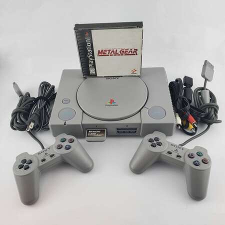 Обложка диска Metal Gear Solid и консоль PlayStation