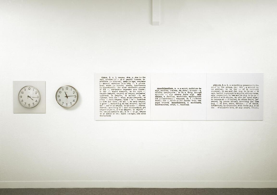 «Одна и три метлы», «Одна и три лампы», «Одно и три растения», «Один и пять часов» Джозеф Кошут, разные года