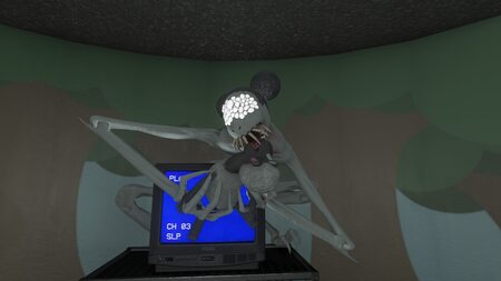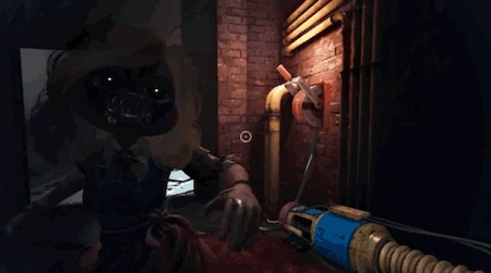 Поведение и анимации маскотов тоже работают на тревожную атмосферу. Искаженные беспорядочные движения, диспропорция, перемещение рывками, изменение двуногой ходьбы на более животную, на корточках, все это странно и необычно для игрока, он насторожен. С помощью этих инструментов и создается грамотная линия напряжения, будь она выражена активной погоней или тихим ожиданием, которое снимается скримером—нападением.