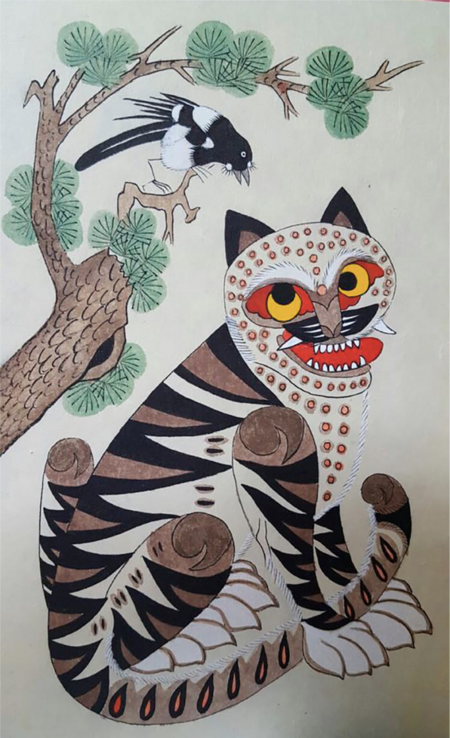 Корейцы считают, что тигры являются посланниками горных богов и приносят удачу, поэтому на картинах Дзякодо они не выглядят жестокими или угрожающими. Сорока в традиционном корейском фольклоре считается предвестником хороших новостей, они также являются посланниками святых божеств, способных наделить удачей. Корейцы считают, что тигры являются посланниками богов и символом удачи, из-за чего на картинах Дзякодо они не изображаются как жестокие или угрожающие существа. В традиционном корейском фольклоре сорока ассоциируется с хорошими известиями и считается посланником святых божеств, которые способны даровать удачу. [1]
