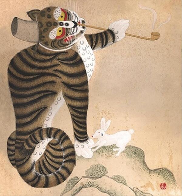 В пословицах периода Чосон тигр выступал не только как защитник, но и олицетворял жестокость, жадность и глупость — отражая человеческие страхи, вызванные опасным зверем. Таким образом, тигр стал символом несправедливого правителя или жестокого янбана (корейского дворянина), который угнетал и притеснял простой народ, представленный в образе кролика.
