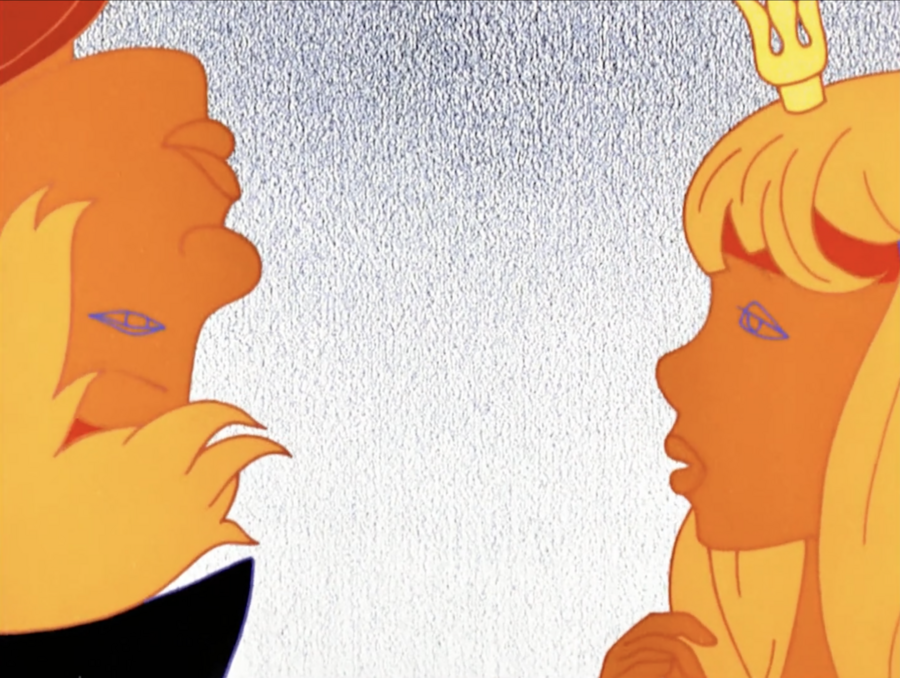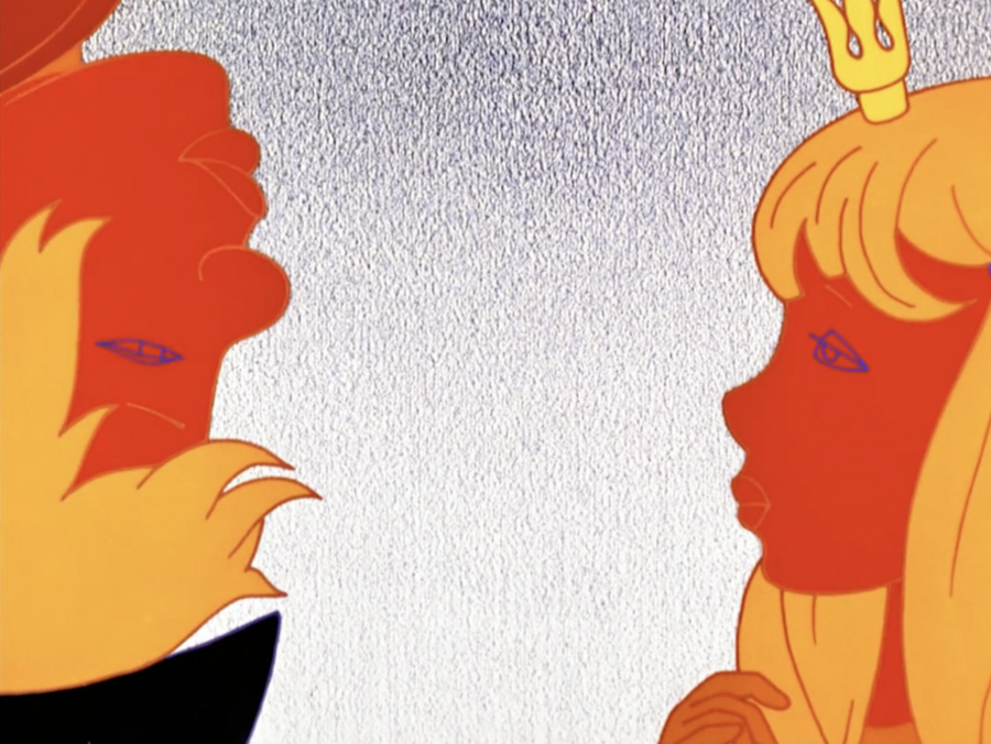 В данной сцене лица героев заливаются красным цветом. Этим передаются их чувства смущённости и влюблённости.