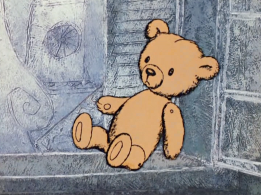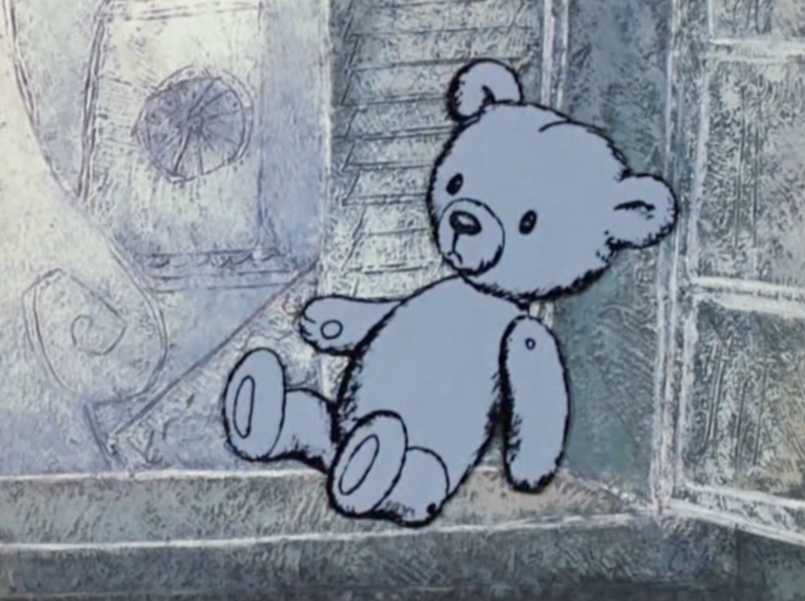 В сцене с игрушкой и у окна изменением цвета медвежонка, а во втором случае всего кадра, нам хотят показать эмоцию грусти и погрузить нас в эту атмосферу, чтобы мы прочувствовали это вместе с героем.
