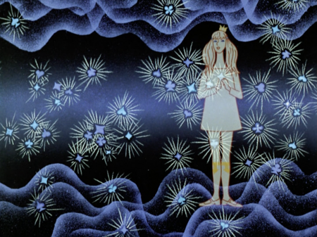 После ярких и весёлых сцен с танцами во дворце мы наблюдаем тёмный кадр и понимаем его настроение грусти, одиночества, покинутости.
