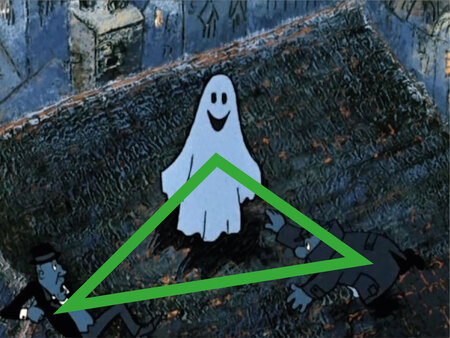 Расположение героев по геометричной композиции (треугольной, квадратной, круговой) позволяет зрителю удобно перемещать взгляд к каждому персонажу, а также такая расстановка экономично использует пространство кадра и показывает его глубину.
