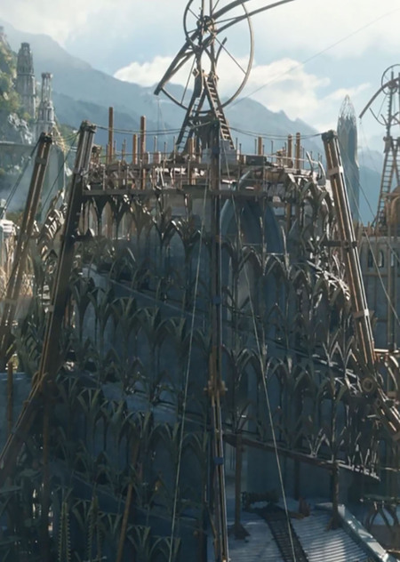 Строения зданий и городов — одна из нужнейших и ходовых вещей в кинематографе поэтому их примеры можно найти практически везде. Их создавали с помощью макетов (от миниатюр до размеров 1 к 1), с помощью matte-painting, покадровой анимации и других различных техник, а сейчас дошли до компьютерных CGI технологий и 3D визуализации.