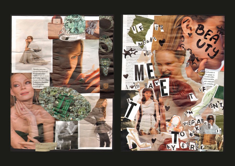 В рамках арт-практики мы попробовали множество техник: как ручных, так и цифровых. От заданий по созданию мудбордов, ресерча, составления брифов и итоговой спродюссированной съёмки, до фотопрогулки, физических коллажей, практик в студии и фото-мозаик.