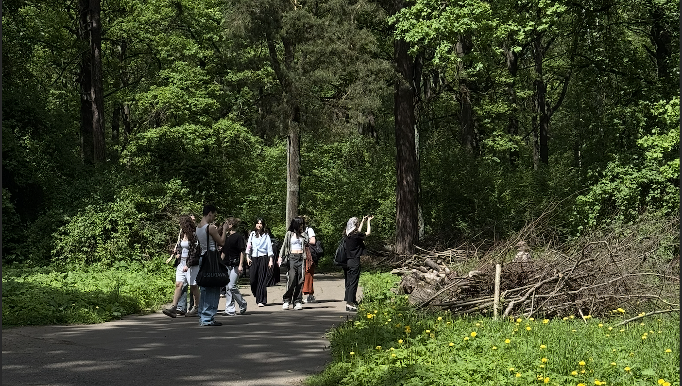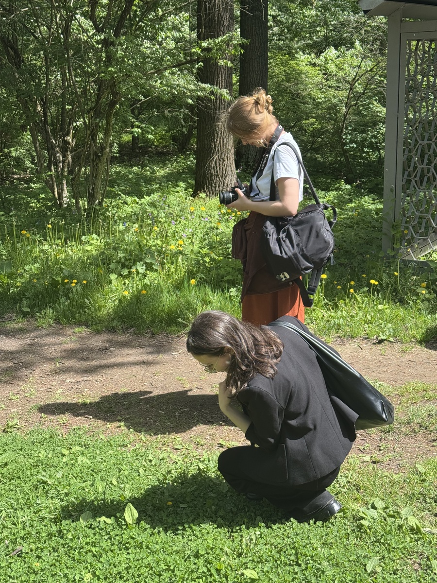 Нашей важной частью практики было выйти за пределы Малой Пионерской и устроить выездное занятие. Выбор пал на ботанический сад. Ребята постарались найти необычные паттерны, световые решения, думать формами и пейзажем, или вовсе найти объект для наблюдения и следовать за выбранной темой.