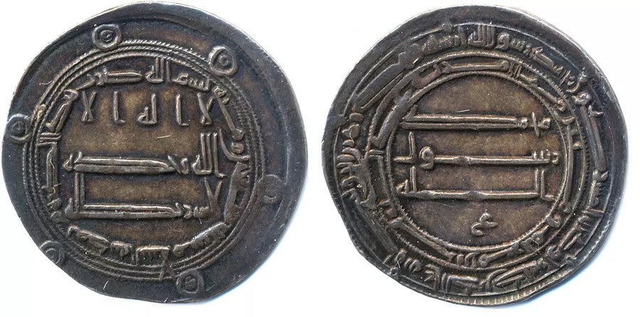 Дирхам Харуна ар-Рашида, серебро, 786–787 года Динар Харуна ар-Рашида, золото, 788