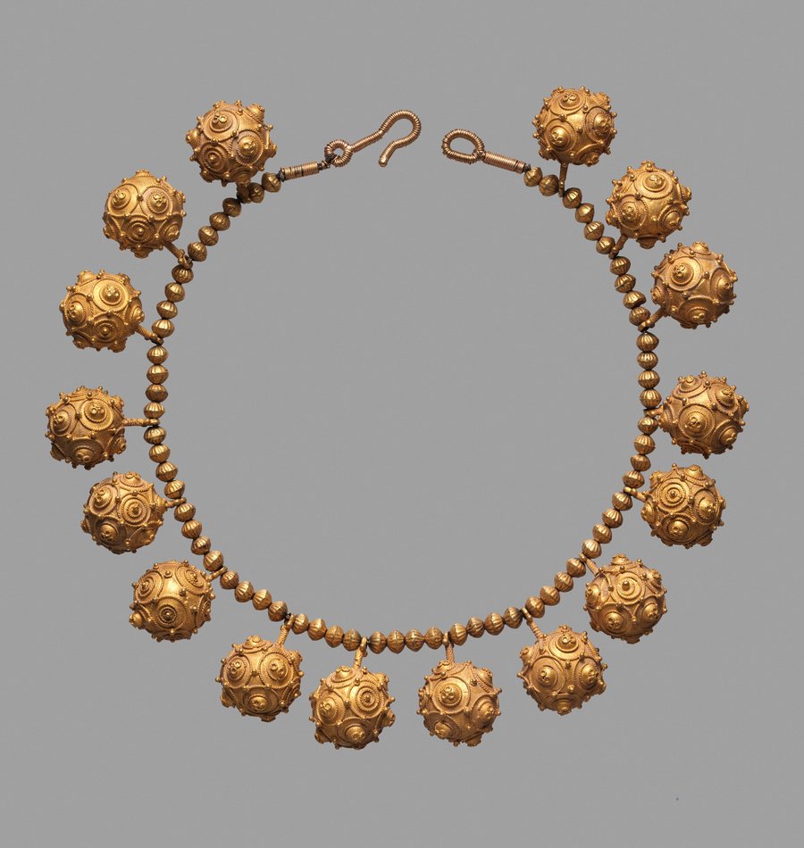 Ажурные сферические и биконические золотые изделия с бусинами. Египет, 1100