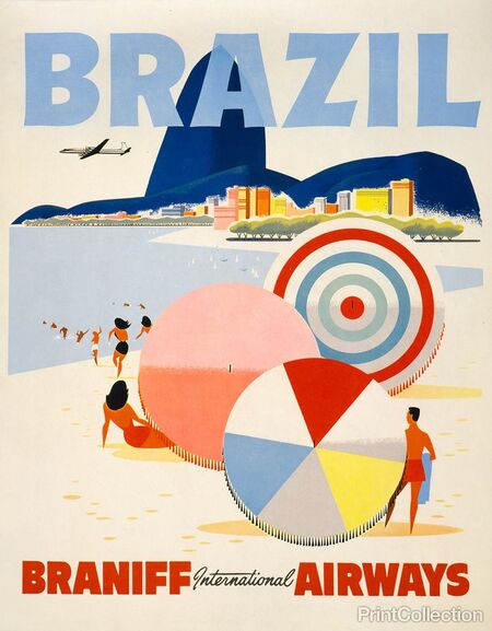 (1) Постер Braniff International Airways, Бразилия (1950 г.) (2) Постер Braniff International Airways, Чикаго (1960 г.)