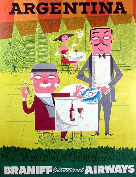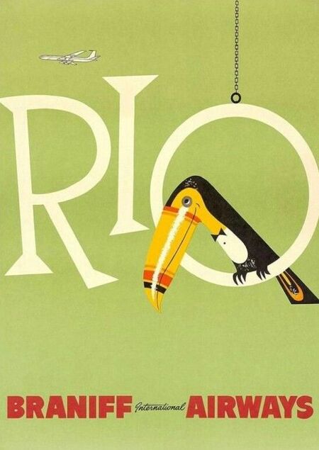 (1) Постер Braniff International Airways, Рио-де-Жанейро (1960 г.) (2) Постер Braniff International Airways, Аргентина (1957 г.)