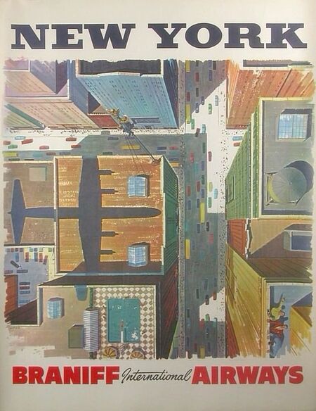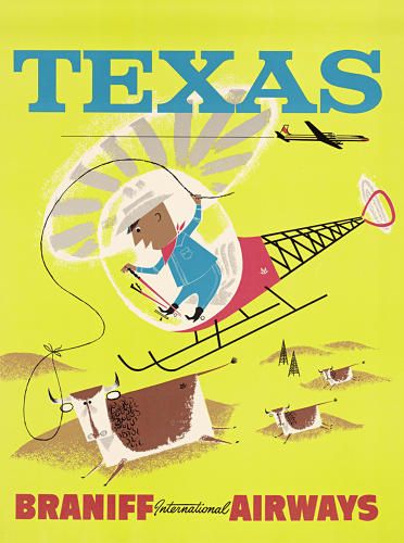 (1) Постер Braniff International Airways, Нью-Йорк (1955 г.) (2) Постер Braniff International Airways, Техас (1960 г.)