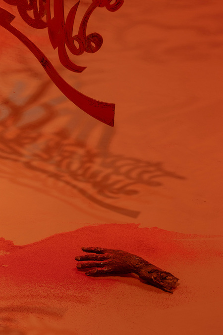 Мония Бен Хамуда, Теология коллапса (Миф о прошлом), 2024. Смешанная техника на железе, паприка, гибискус и корица. Фотографии Мусаккио, Паскуалини, Фучиллы / MUSA