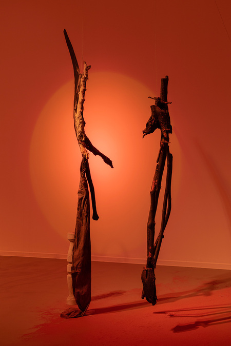 Мония Бен Хамуда, «Разрушение идолов Каабы», 2023 г.; Карбонизированная древесина, древесный уголь, бетон, ткань, гипс, свинец, железо, глина, порошки специй. Фотографии La Casa Encendida. Galerna.
