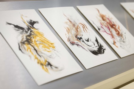 Цветовые акценты, запах пряностей, яркие и густые, словно всплески эмоций, создают живую динамику, заставляя зрителя остановиться и задуматься о произведении, создавая контакт с ним. Подвешенные конструкции, находясь в воздухе, легко балансируют, подчеркивая хрупкость.