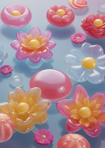 Промпт: 3d gelly sweets fantasy world floating gellies shaped in the form of flowers Референс: https://www.dropbox.com/scl/fi/3qf9m4jvxh1vt5fzdef68/2.png?rlkey=9vqxko0yq4751x2hkwv0kts1i&st=e1k188fp&dl=0