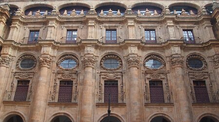 Одна из самых красивых площадей Испании. Она была построена в стиле барокко по проекту Альберто Чурригеры. На ее северной стороне расположено здание мэрии, также в стиле барокко, с пятью гранитными арками и башней в окружении четырех аллегорических фигур. Среди декоративных элементов выделяются медальоны, на которых изображены такие известные личности, как Карл I, Альфонс XI, Фердинанд VI, Сервантес и святая Тереза. Фасады зданий имеют три этажа и опираются на полукруглые арки с балюстрадой. В наши дни эта площадь является одним из самых оживленных и многолюдных мест Саламанки.