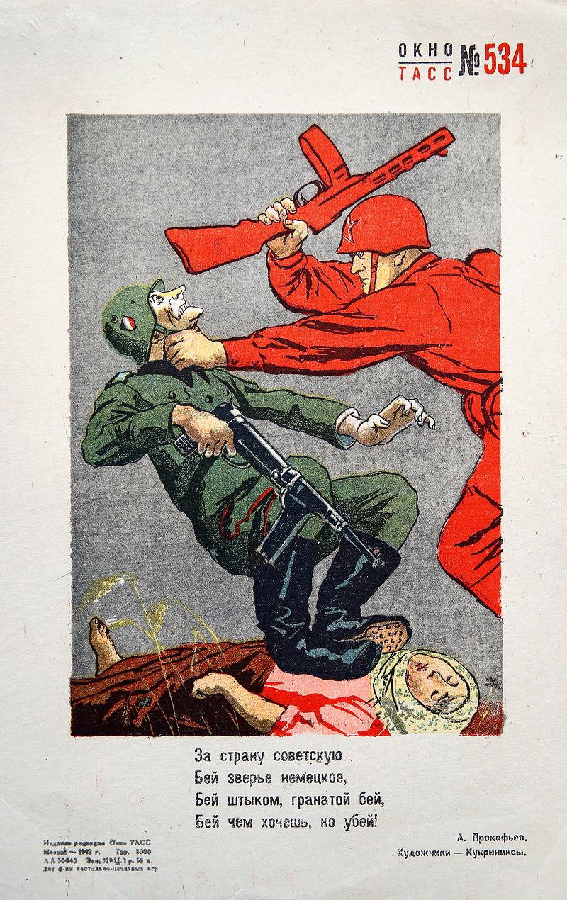 2. Плакат № 534, 1942 год. Художники Кукрыниксы, текст А. Прокофьев. Из книги В. А. Масленникова Окна ТАСС 1941-1945