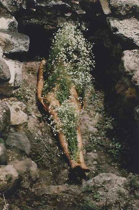 Этот перфоманс она всегда описывала как диалог между пейзажем и женским телом, связью со вселенной, возвращением к материнским истокам: