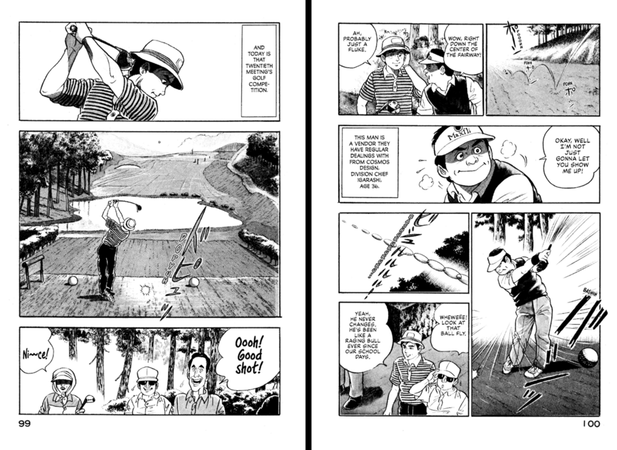 В манге 1980-х изображены стереотипные виды досуга наемных работников: игра в гольф и употребление спиртных напитков после работы с коллегами в рамках корпоративной культуры.