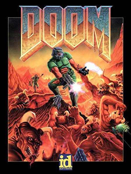 Обложка (слева) и скриншот (справа) из игры Doom (id Software, 1993)