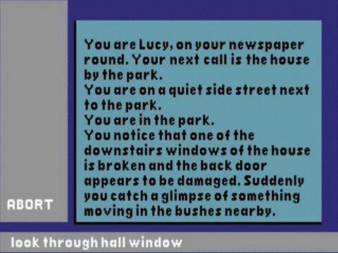 Другой интересный пример The Rats. И стиль, и история создания сильно разнятся с предыдущей игрой. Это текстовая игра, которая была основана на романе.