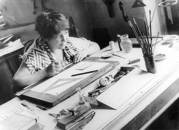 Варвара Степанова. Рисунок для ткани. 1924 год. Варвара Степанова рисует эскиз для текстиля. 1924. Фотограф Александр Родченко.