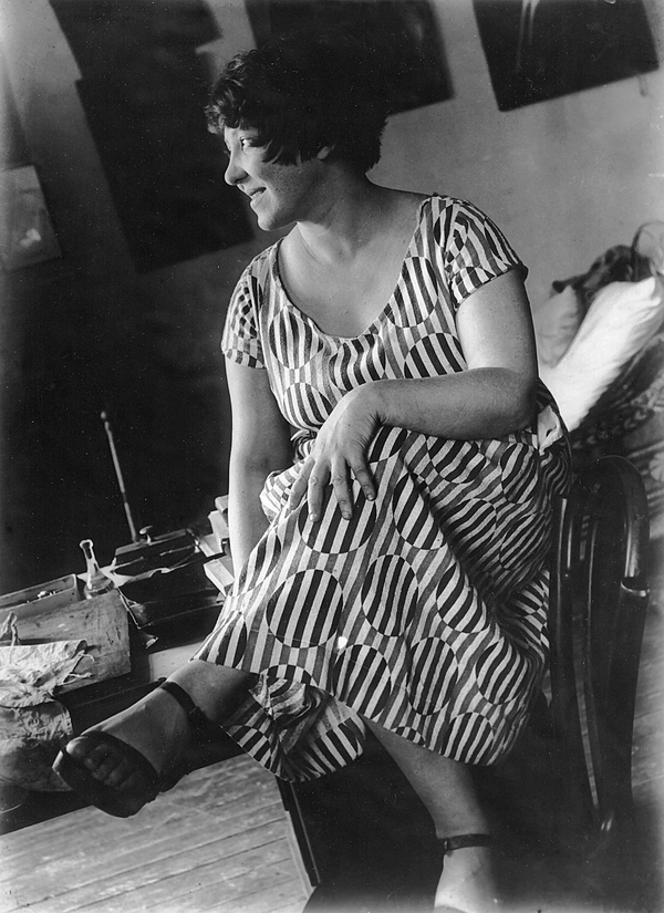Любовь Попова. Год и фотограф неизвестны. Варвара Степанова в платье из ткани по ее рисунку. 1924. Фотография Александра Родченко.