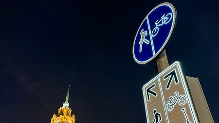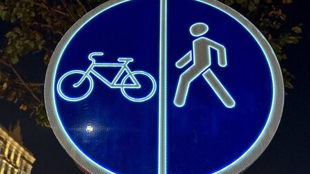 Светодиодные знаки «Пешеходная и велосипедная дорожка с разделением движения», Москва, 2024 г.