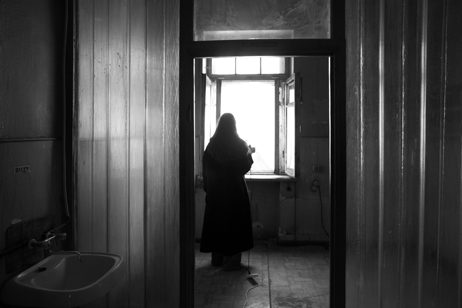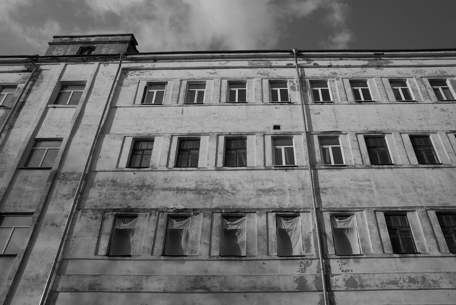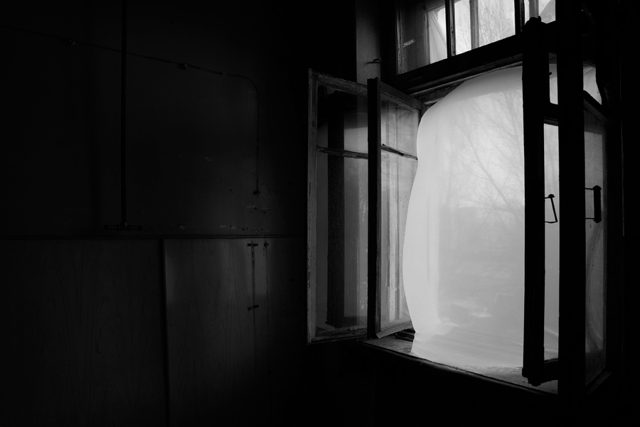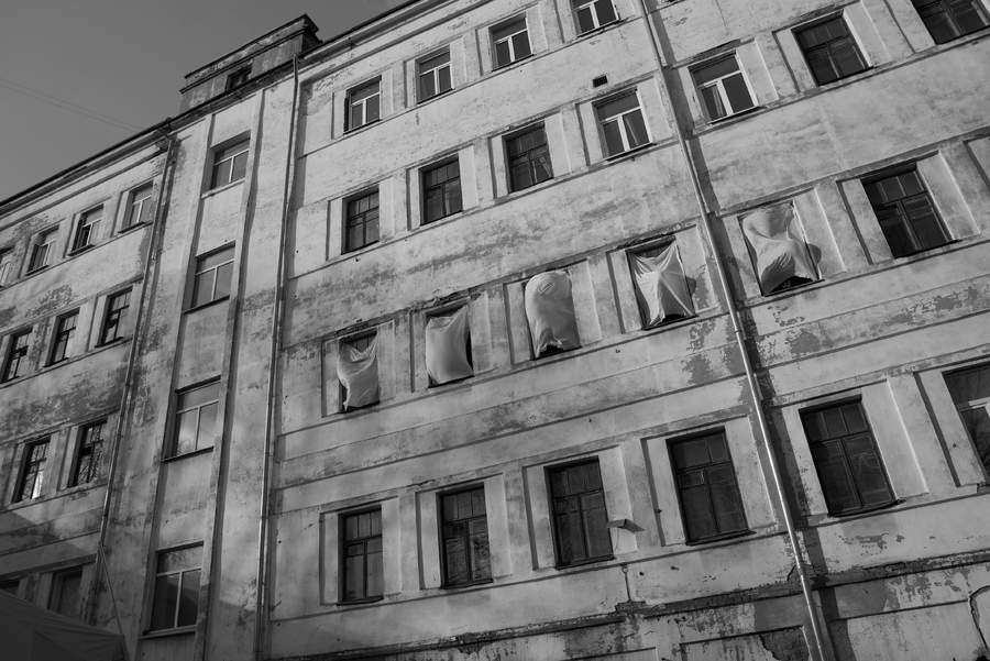Пространство: заброшенный НИИ с пустыми окнами, выбранный как «организм» для дыхания.