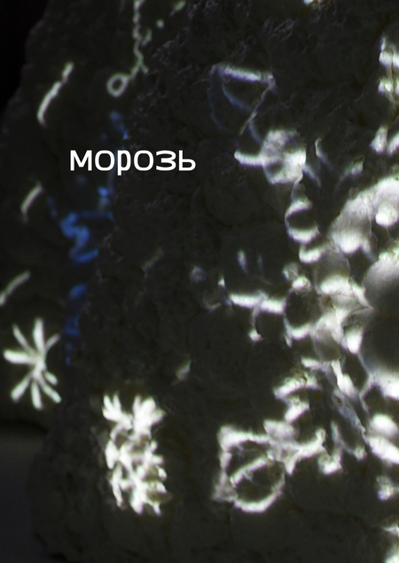 Для презентации видеоклипа я использую прием mapping и проецирую его на три сугроба. Они, как «срез» зимы, задают инсталляции атмосферу метельного времени.