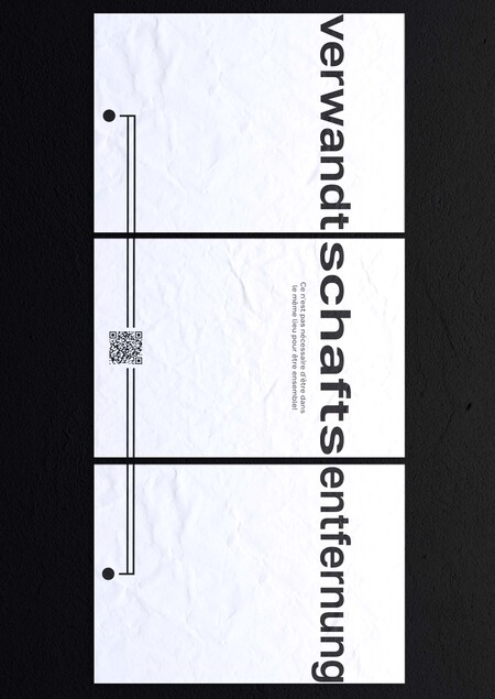 Безразмерные кольца символизируют расстояние и одновременную близость членов семьи, а внутри каждого кольца есть надпись «семейное единство»: «familienzusammengehörigkeitsgefühl»
