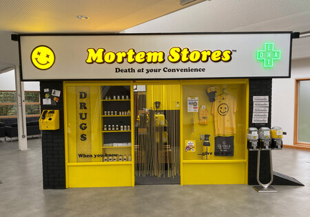 Созданная дизайнером Иэном Уолденом, эта провокационная инсталляция представляет вымышленный магазин, торгующий товарами для самоубийств. Такой черный юмор призван вовлечь аудиторию в дискуссии об этике смерти и умирания.