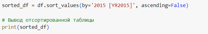 Так как данных у меня было очень много, я решила отсортировать их в порядке убывания и в последствии я убирала данные которые мне не подходили для графиков.