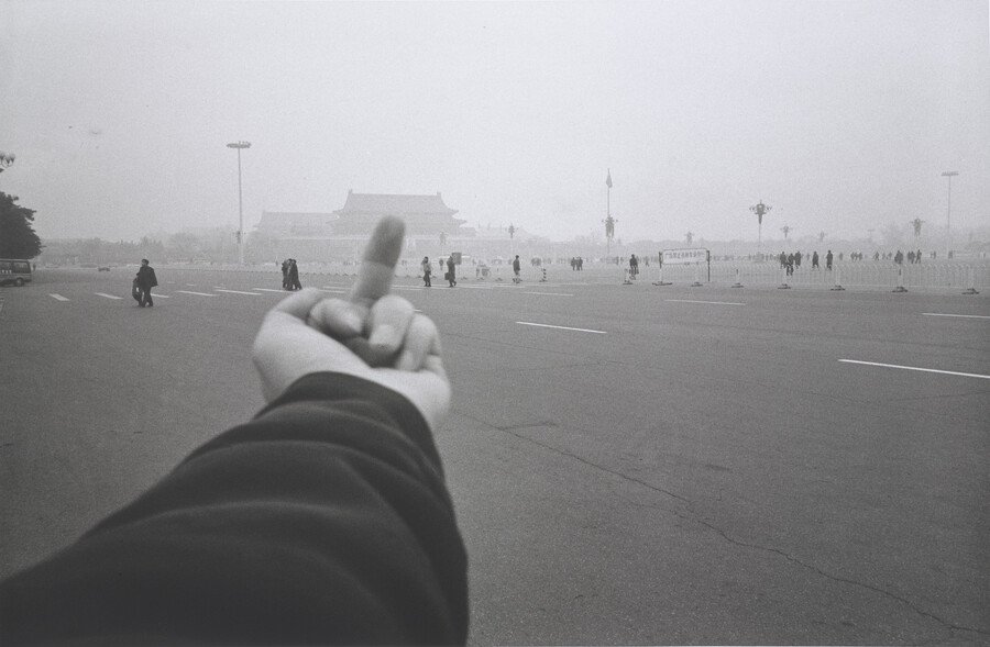 5. Отказ от страха Самый политически насыщенный кадр — Middle Finger to Tiananmen Square. Это не столько критика символа власти, сколько прямой жест в сторону пространства, где произошла одна из самых травматичных политических трагедий современной китайской истории. Жест становится вызовом самой структуре цензуры. Он рискован и потому особенно политичен: художник буквально показывает государству, что он не боится публичной позиции.