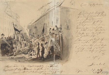 Barrikade auf dem Stephansplatz am 26. Mai 1848 / Carl Anton Goebel (auch Göbel) (1824—1899), Zeichner