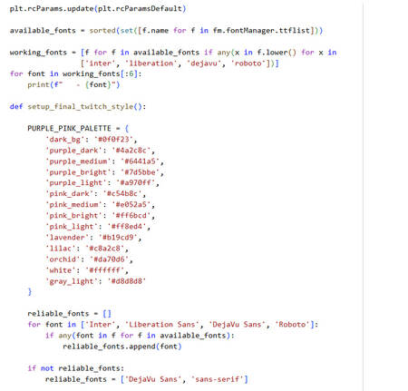 Оригинального шрифта Twitch в открытом доступе нет, поэтому я использовала шрифты DejaVu Sans и Liberation Sans из библиотеки Google Colab.