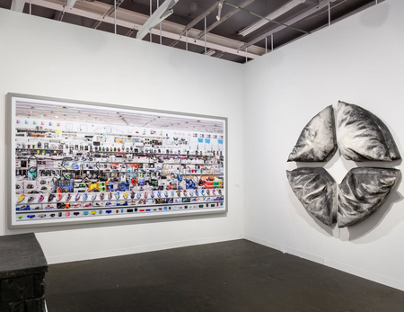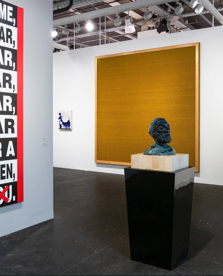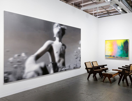 Из характерных черт экспозиции можно выделить наличие крупноформатных холстов / печатных работ (например, Крюгер). Предположу, что работы большого формата на ярмарку привозятся для ЦА — коллекционеров и представителей институций, которые ищут «statement pieces» для своих домов, личных и корпоративных коллекций, музеев или общественных пространств. Они готовы инвестировать в значимые и масштабные работы. К тому же, на сайте галереи заявлено, что благодаря «кураторской строгости» Sprüth Magers удалось установить тесные партнерские отношения с музеями и кураторами по всему миру.
