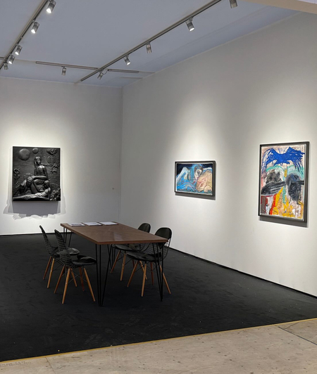 Моно-стенды встречаются реже. В 2025 году пока был представлен только один такой стенд на TEFAF — моно-стенд с работами Анне Имхоф.