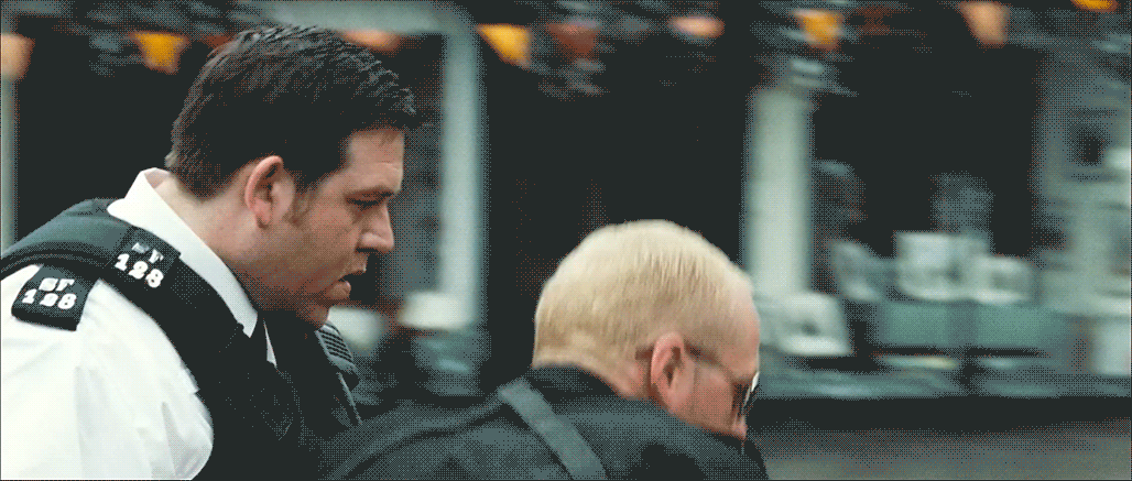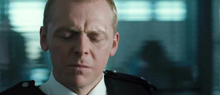 Или же первое представление главного героя, которое ярко илюстрирует нам, Николас Анджел имеет в жизни такой же характер, каким должен обладать образцовый офицер полиции на службе: серьезный, сдержанный и профессиональный.
