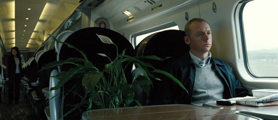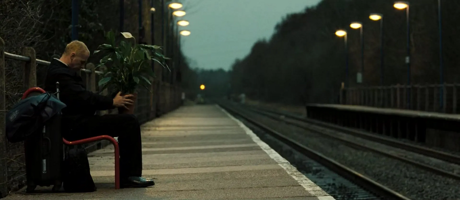 Также как и в предыдущем примере, в этих перебивочных кадрах изменено освещение, но также меняется и окружение: вместо современного и технологичного поезда герой пересаживается на обычную потрепанную электричку.