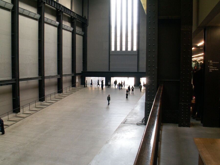 Главная входная зона и сердце Тейт Модерн — гигантский Турбинный зал, бывшее промышленное пространство высотой 35 метров и длиной 152 метра. Сейчас это вестибюль и площадка для масштабных инсталляций ведущих художников мира. Свет и воздух создают ощущение крытой улицы — городской площади, где проходят арт-события и выставки.