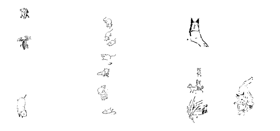 Сетон-Томпсон предпочитал работать в технике тушевого линейного рисунка: она позволяла передавать характерные жесты и динамику движений, обеспечивая ясность и научную точность изображения. Как следует из названия техники, иллюстрации выполнены преимущественно тушью и пером — техникой, характерной для европейской и североамериканской натуралистической графики конца XIX века. Мы видели ей ранее и у Кэррола, и у Поттер, и у Тенниел. Советские художники тоже её использовали, их работы будут представлены в следующих разделах. Эта техника обеспечивает высокую чёткость линии и позволяет точно передавать структуру тела, направление шерсти, напряжение мышц и динамику движения. В рисунках Сетона-Томпсона используется последовательная штриховка, меняющая направление в зависимости от формы объёма, что придаёт изображению динамику. Контраст чёрного пера и белого фона делает композицию ясной и легко читаемой для детского взгляда. А благодаря скорости создания изображения, работы Томпсоном создавались преимущественно с натуры.