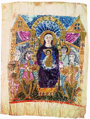 Общий пример стиля развитого средневековья. Тонкая проработка лиц и использование лазури как символа небесной сферы.