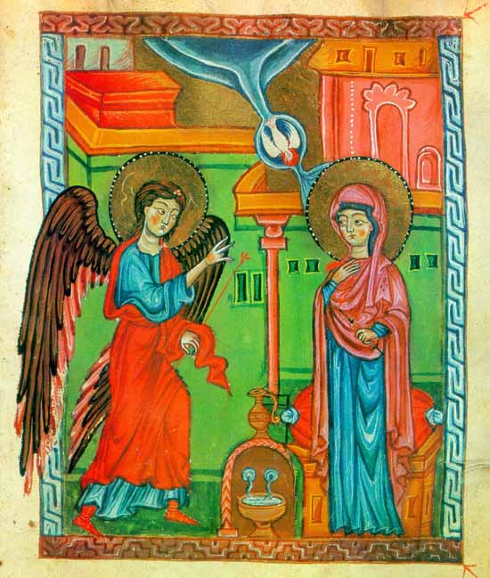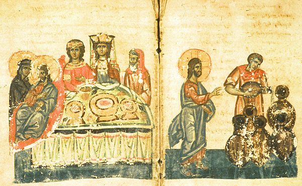 1. Крещение Господне. Одна из четырех миниатюр из Эчмиадзинского Евангелия (989 г.) VI–VII вв. — наиболее ранних из сохранившихся. 2. Поклонение волхвов. Миниатюра из «Эчмиадзинского Евангелия». VI–V