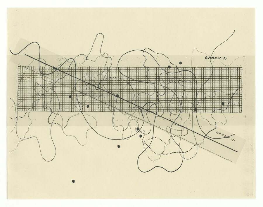 «Fontana Mix» (1958): Набор инструментов для создания партитуры: несколько листов с кривыми линиями, 20 полупрозрачных пленок с точками и лист с координатной сеткой. Исполнитель, накладывая их друг на друга, сам создает уникальную схему, определяющую параметры звука. Эта работа стирает грань между композитором и исполнителем.