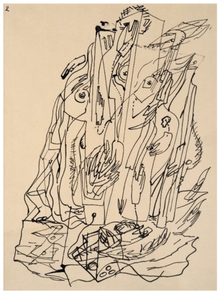 Автоматический рисунок стал визуальным аналогом автоматического письма. Там, где письменный поток — это слово, автоматический рисунок — чистый жест. Линия движется свободно, дрожит, вращается, не стремясь что-либо изобразить. Задача художника — следовать за движением руки, а не управлять им.