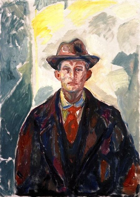 Автопортрет с шляпой и красным галстуком, Эдвард Мунк Автопортрет с бутылкой вина, Эдвард Мунк